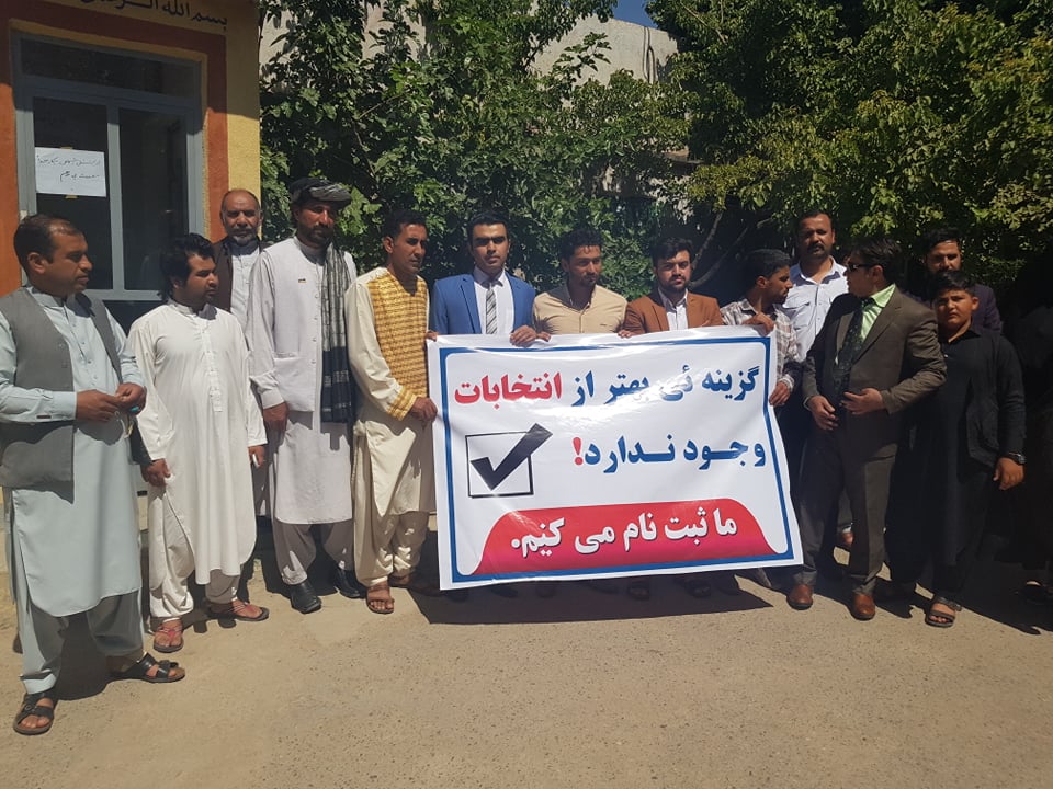 شماری از شهروندان و فعالان مدنی در هرات امروز به حمایت از انتخابات در مراکز ثبت نام رای دهندگان حضور یافتند.